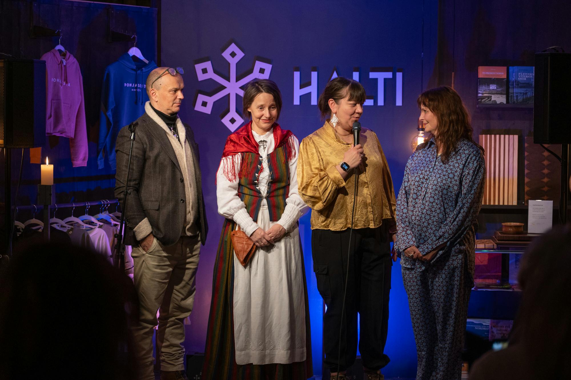 Frank Jørstad (Kvääniteatteri), Ingeborg Arvola (forfatter), Wenche Viktorsdatter Paulsen (Riksteatret) og Cecilie Mosli (regissør)